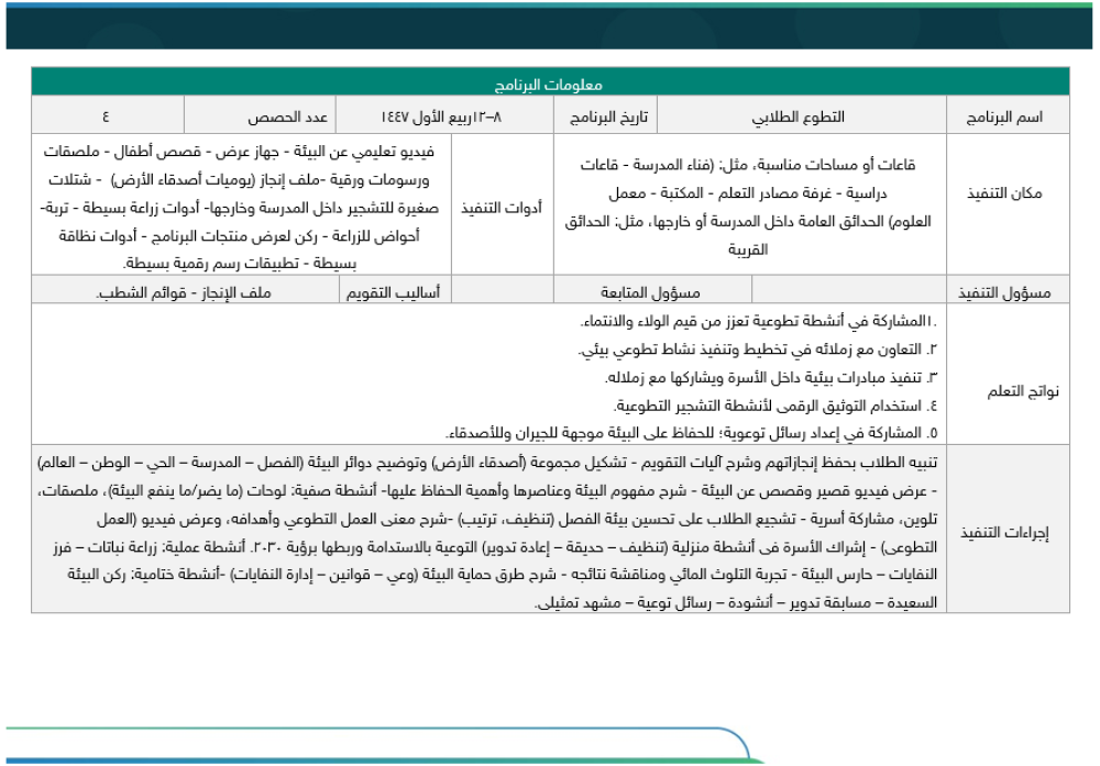 خطة النشاط الطلابي المرحلة الابتدائية صفوف أولية 1447