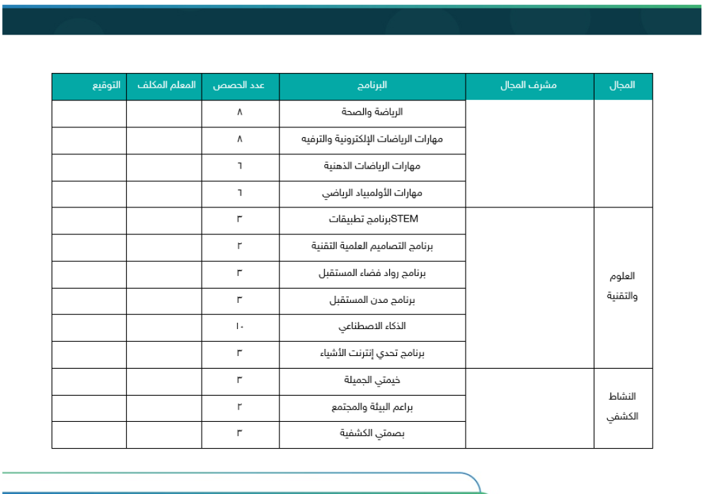 خطة النشاط الطلابي المرحلة المتوسطة للعام الدرسي 1447