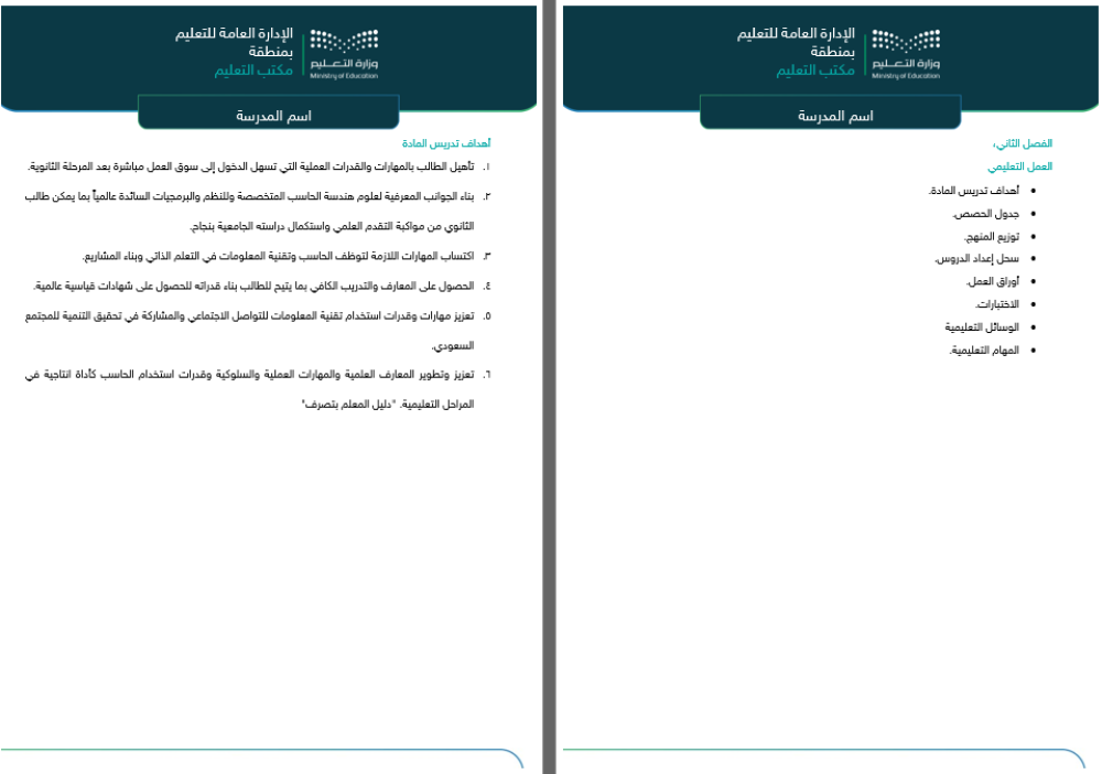 - لضمان عرض الملف بالتنسيق الصحيح يجب فتح الملف باستخدام جهاز حاسب آلي يحتوي على الخط الرسمي لوزارة التعليم