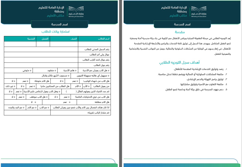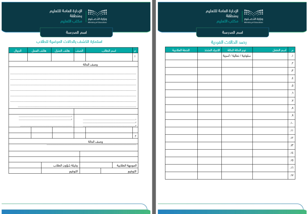 النماذج والاستمارات التي تحتاجها الموجهة الطلابية في مرحلة رياض الأطفال