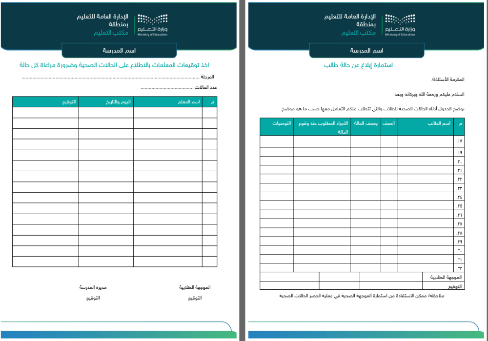 2. استمارة الكشف بالحالات المرضية للطلاب